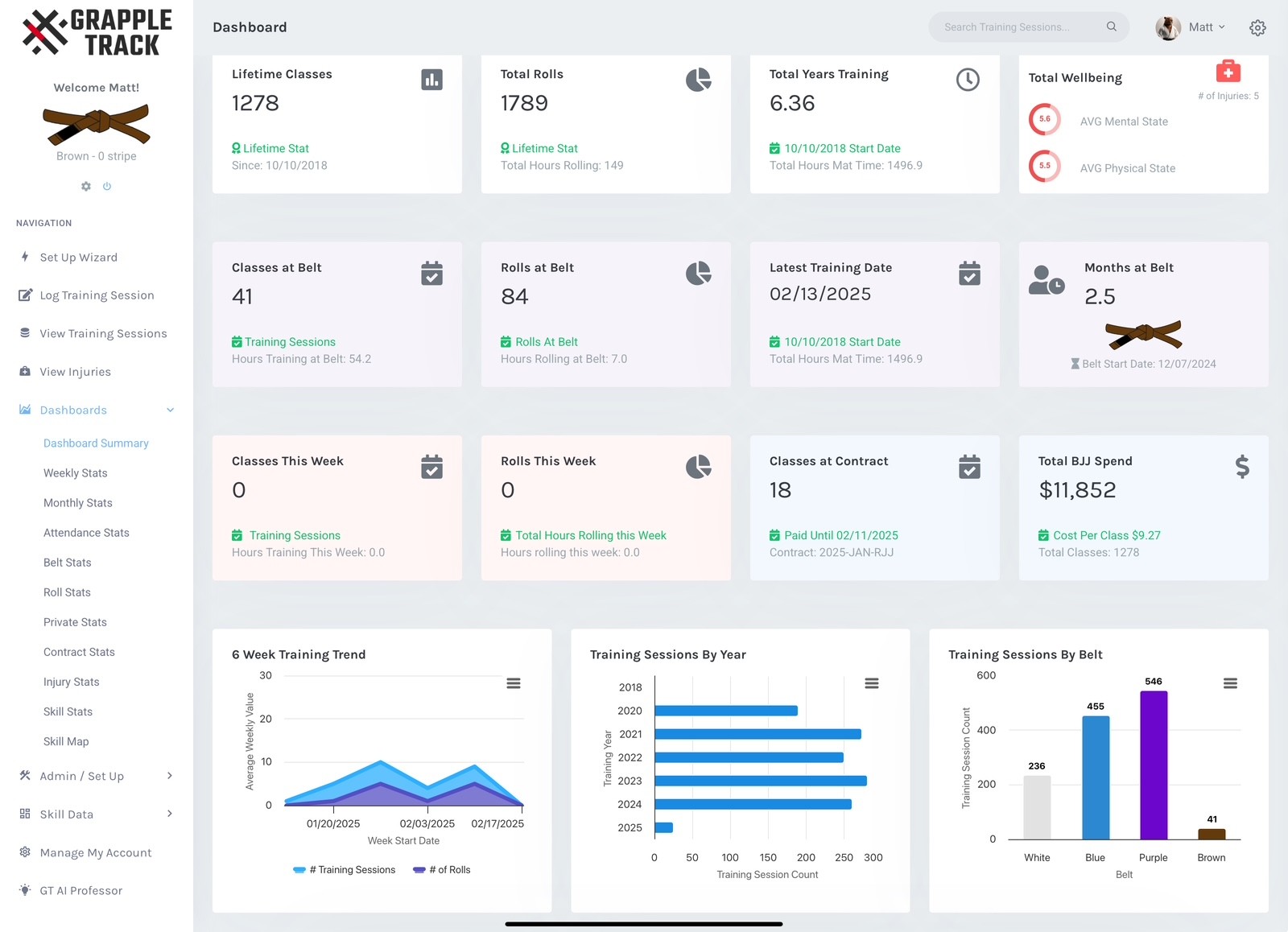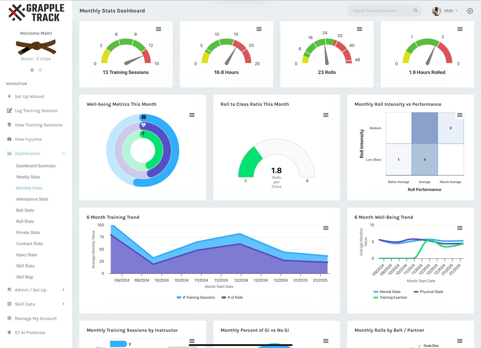 As a GrappleTrack user, you'll gain access to powerful dashboards, including: