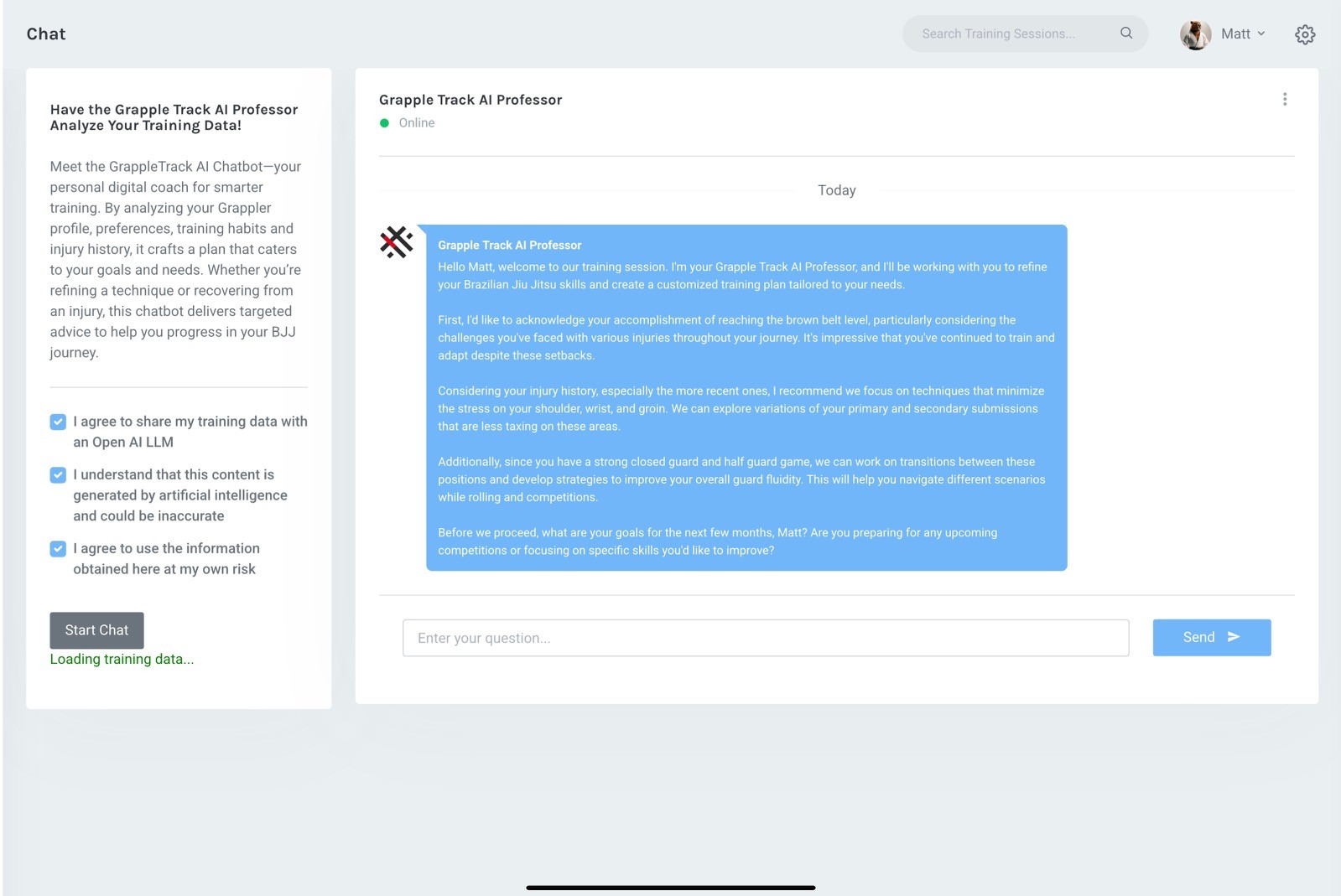Get Started...Your personal AI-powered Jiu-Jitsu expert, delivering custom intelligent insights and personalized training recommendations based off of your data.