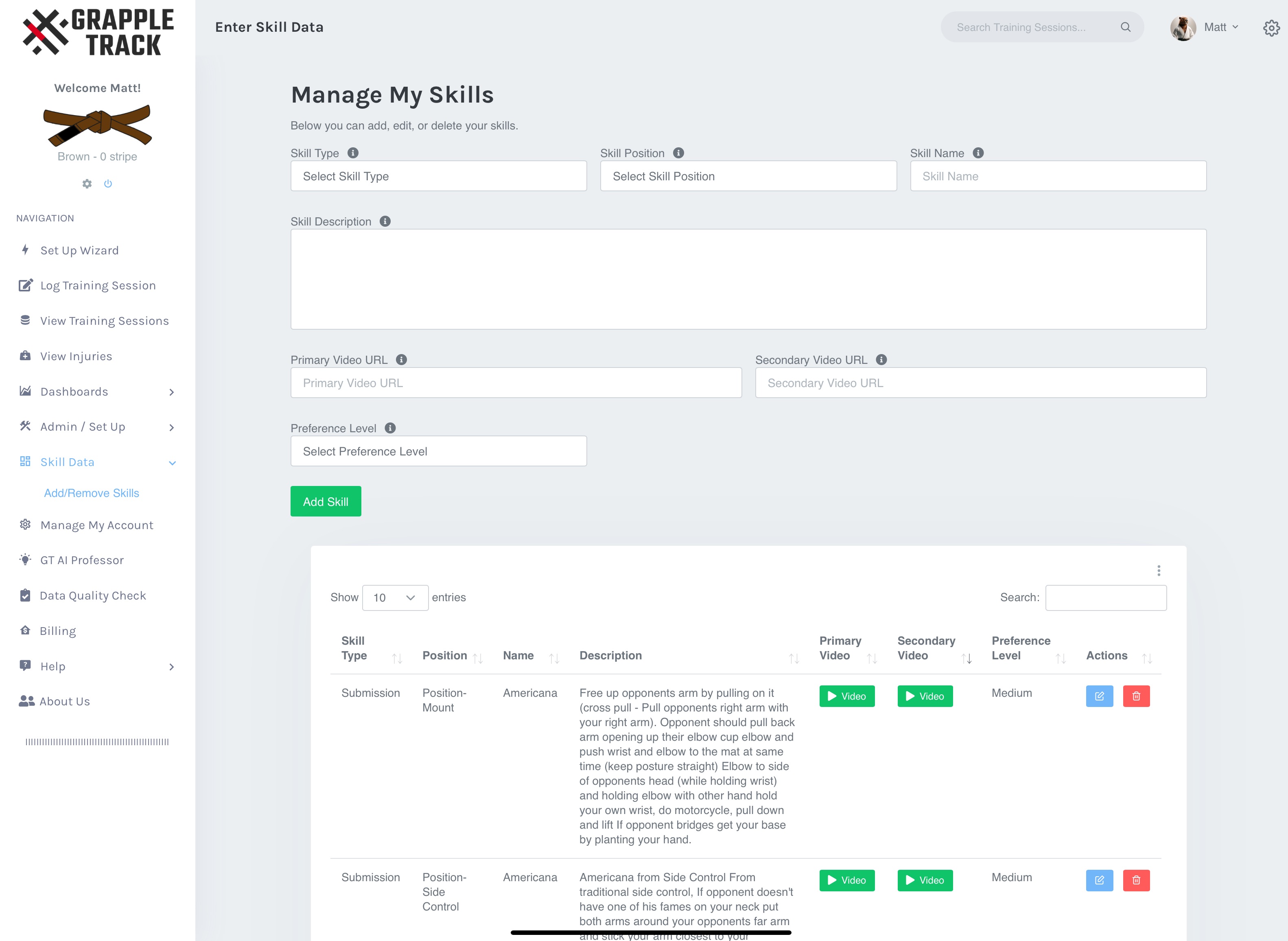 All the following features are available with your GrappleTrack Subscription